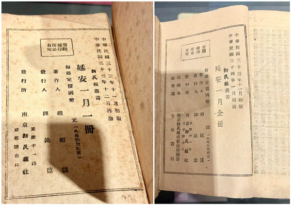 这次展出的四个渝版《延安一月》,纸张都发黄发脆,品相远比一年后的沪版《延安一月》差。但从叶至善的回忆来看,也许,在80年前,刚刚印出来的《延安一月》,真的特别漂亮,是“精品”呢。(李天扬)