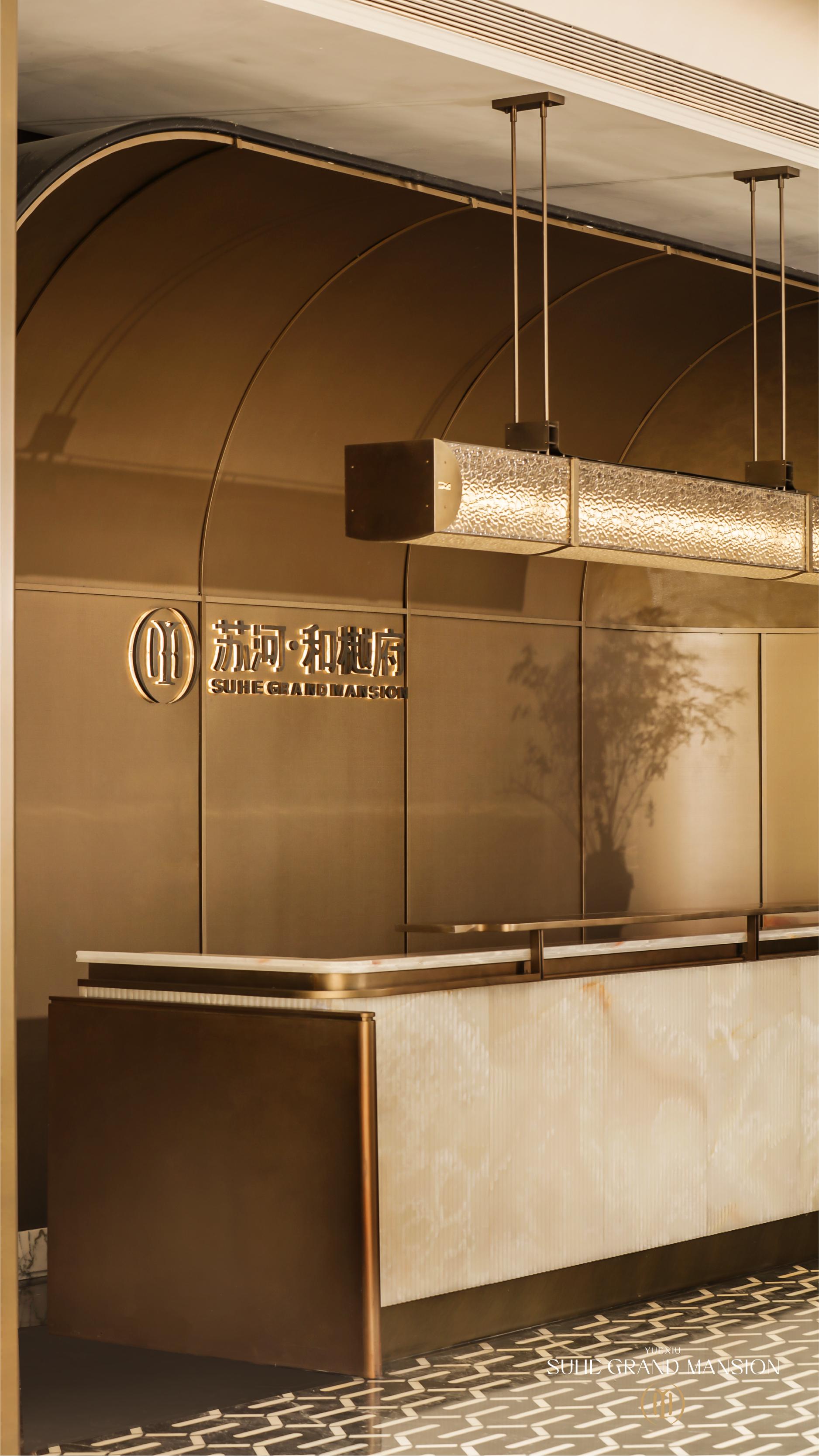 自然主义奢宅和樾府,读懂苏河的文脉、绿脉,以非遗锻鏨手法打造10米铜门,以匠心的手笔来续写百年苏河的历久弥新。以自然的美国白金花岗岩打造立面,以维纳多自然石材来呼应苏河的勃勃生机。同时因地制宜,将和樾府logo融入玉兰元素,彰显摩登的城市文化。