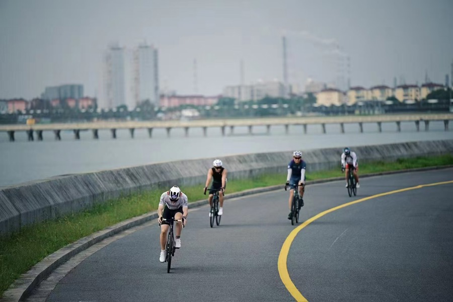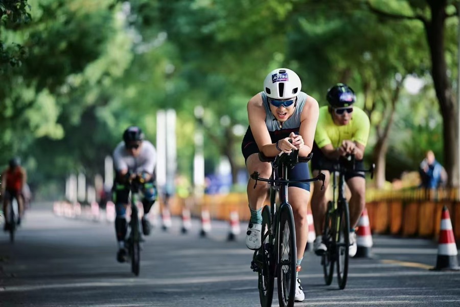 紧接着是自行车赛段的比拼。选手们沿着被誉为最美环海公路的沪杭公路骑行,沿途的海风、绿树、渔村与大海交相辉映,成为竞技过程中的独特风景。然而,他们还要面对速度与耐力的双重挑战,紧密的赛事进程如同天然的障碍,不断挑战着选手们的体能极限,让每一位铁人都感受到了前所未有的压力。但正是这样的挑战,让铁人们紧咬牙关,奋力蹬踏,不断超越自我,用行动诠释了什么是真正的“铁人精神”。