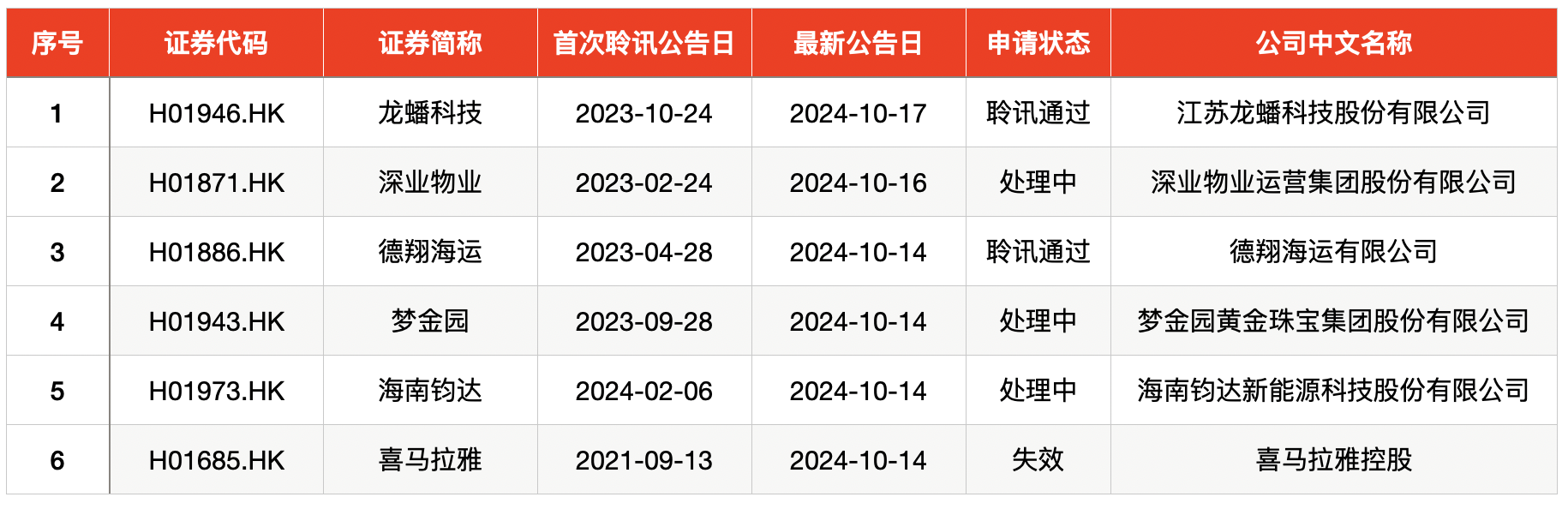 上周,港股共有3家企业更新招股书,分别为深业物业运营集团股份有限公司(简称“深业物业”)、梦金园黄金珠宝集团股份有限公司、海南钧达新能源科技股份有限公司;德翔海运有限公司、江苏龙蟠科技股份有限公司通过聆讯。