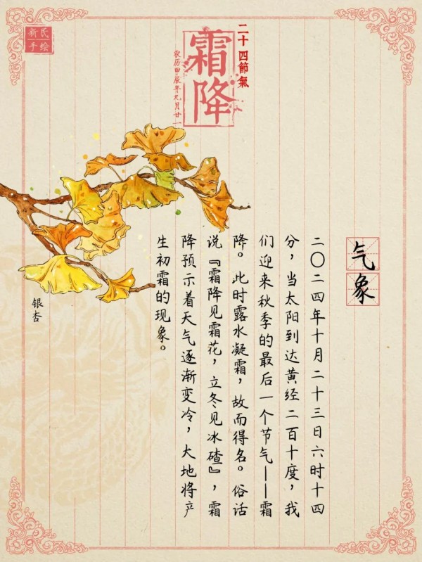 2024年10月23日6时14分,我们迎来秋季的最后一个节气——霜降。