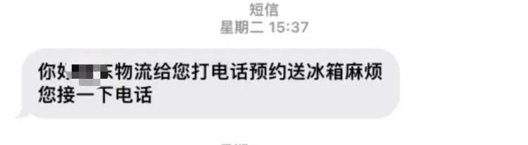 10月15日,黄女士接到平台物流的短信,说有冰箱要配送,因家中在装修,也确实买了一台冰箱,黄女士便没有生疑,并表示希望延后配送。