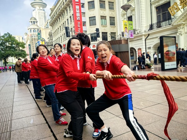 本届马路运动会设置趣味运动项目与民俗体育展演结合,因地制宜地与景区、街区、商圈融为一体,增加步行街的“烟火气”,带旺街区、商圈的“满满人气”,激发景区的“勃勃生气”。行业特色运动项目有滚圆台面混合接力、托盘有障碍混合接力和拔河邀请赛。其中,“同舟共济”等新型趣味运动项目精彩纷呈。步行街上的市民也被助威声、喝彩声吸引了过来,呈现了一幅“全民健身 幸福黄浦”的活力画卷。