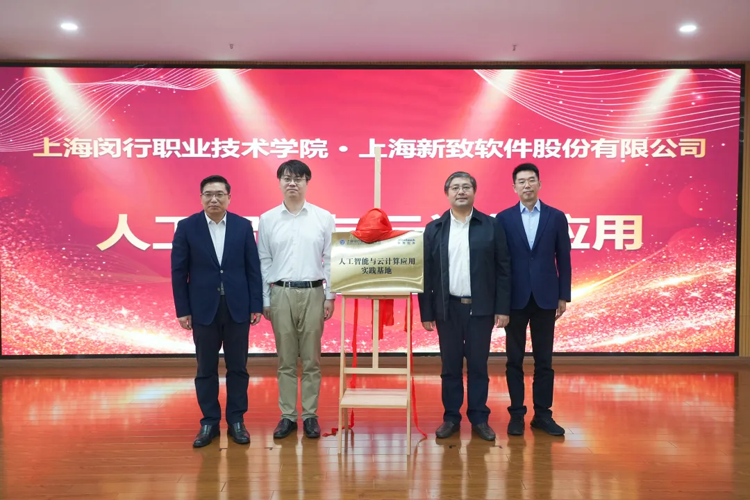 李丹、吴亮、黄茂华、陈冬发共同为“人工智能与云计算应用实践基地”揭牌。这一基地的成立是闵行职业技术学院(闵职院)致力于提升全校师生数字素养与技能的一项重要实践。基地培育基于人工智能与云计算技术的应用场景,为校内师生提供丰富的数字化场景体验,更进一步为闵行区在数字化、智能化教育方面提供创新实践与深刻洞察,推动闵行区全民数字素养与技能培训的高质量发展。