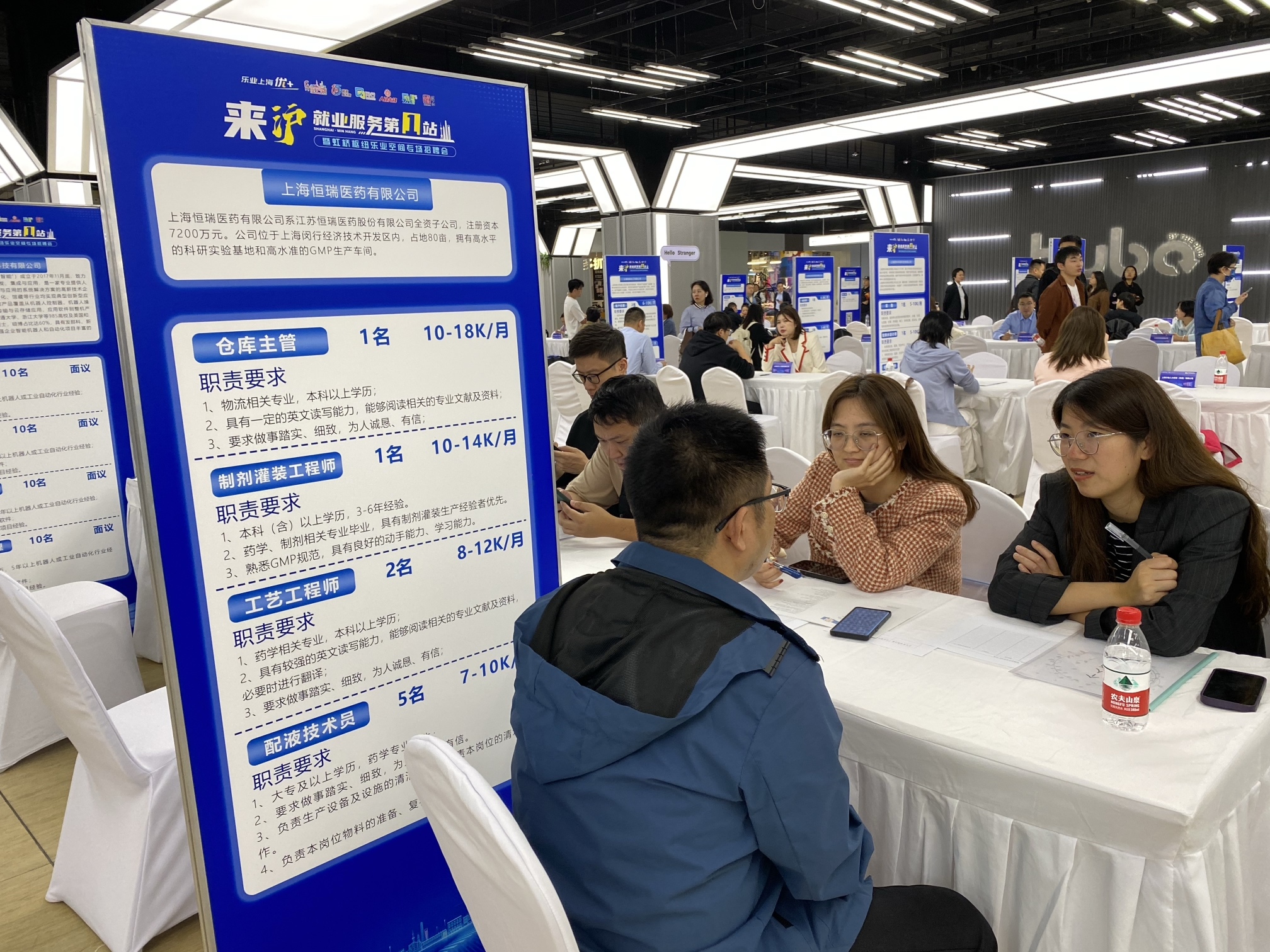 “没想到在虹桥火车站就能参加招聘会、登记个人信息找工作,还是挺方便的。”来自安徽的何先生说,自己以前干过化学品仓库管理工作,今天看到一家医药公司招聘仓库主管,月薪1万至1.8万元,对于初次到沪的外地求职者来说很有吸引力,而且岗位与自己“比较对口,适应起来也快”。