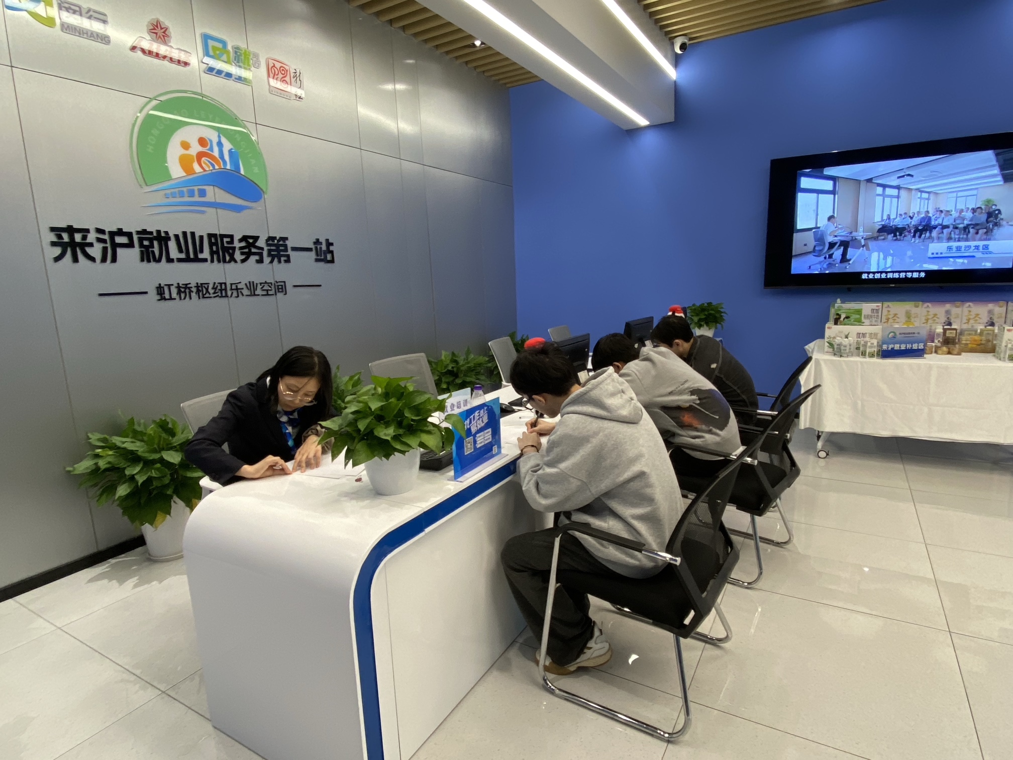 今年9月7日,位于上海闵行南部的“大零号湾乐业空间”对外开放。如今,“虹桥枢纽乐业空间”的正式建成,为闵行打造两大区域性“一站式”人社综合服务空间拼上了北面的那块拼图。作为来沪“桥头堡”,这里为来自全国各地的求职者们设置了休息补给专区,提供免费的牛奶点心,还启动了“闵行区与对口地区劳务协作提升行动”,开展岗位招聘、稳岗帮扶、暖心慰问、直播带岗、创业培训等一系列配套服务。
