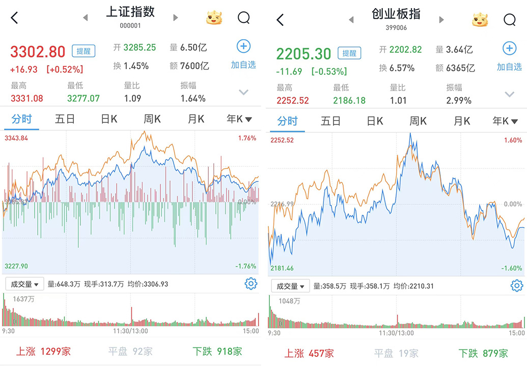 沪指重返3300点,创指跌0.53%:光伏产业链午后爆发