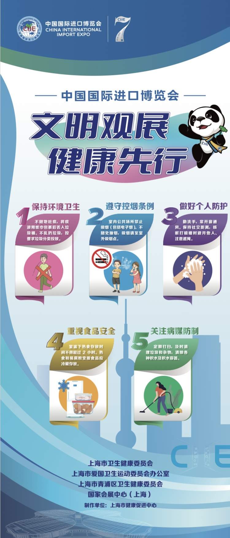 上海控烟工作始终走在全国前列,为营造健康上海的良好氛围环境,市健康促进中心会同青浦区卫生健康委、青浦区爱国卫生和健康促进指导中心对国家会展中心开展控烟工作专题调研,并形成调研报告,通过强化内部管理、营造无烟环境、配合监督执法等方面,指导场所单位和青浦区提升控烟管理成效。从10月中旬起,在“外滩之窗”“世博轴”等城市地标建筑投放“无烟上海,健康进博”主题宣传。