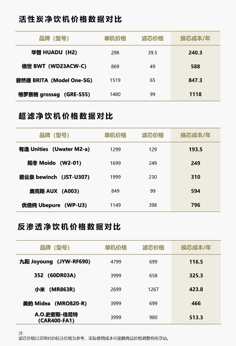 更便宜的滤芯单价并不意味着更低的使用成本