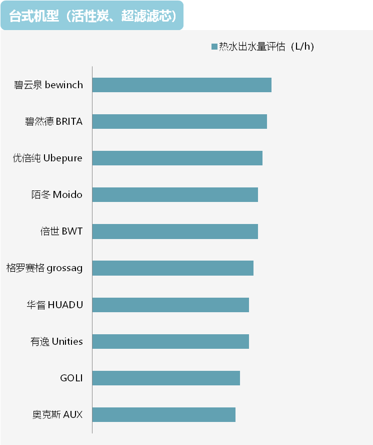 出水量上,实测显示,台式净饮机出水量相对较小,10款机器的实测数据在19.0L/h至24.0L/h之间,单次最大取水量多在0.5L以内,比较适合日常冲泡茶饮。