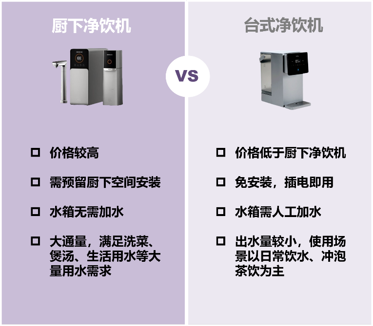 市面上主流的净饮机有台式和厨下两种机型,从过滤方式来看,多为活性炭、超滤、反渗透3种不同的过滤装置。