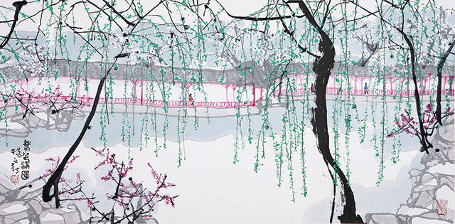 中国画具有悠久的历史和丰厚的传统,千年以来,文脉延续,蔚为壮观。然而随着文人士大夫主掌画坛,中国画的发展越来越脱离实用性、注重精神性,导致绘画艺术越来越精英化、私人化。到了近现代中国社会大变革的时代,中国画对于社会的贡献微乎其微,而西洋画因其明显实用的功能性而大行其道。于是,中国画何去何从变成了一个世纪话题。有意思的是,在杨正新艺术不断走向成熟的时期,遇到了改革开放,中国画世纪话题重又提起,而杨正新走过的路,不论是对于传统的学习还是国外的经历,和一些前辈竟也有很多相似之处。