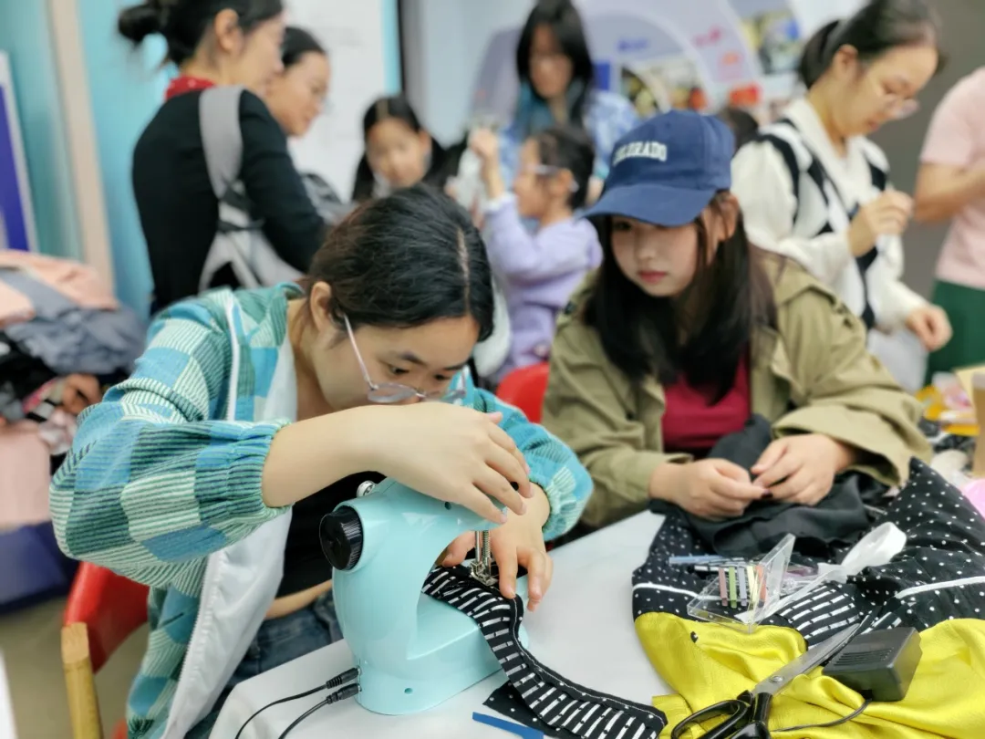 社区家庭通过动手实践,将旧衣交换与创意改造结合,把环保变成生活中触手可及的时尚尝试。为了增加活动趣味性,现场还设有打卡集章和马赛克冰箱贴制作等环节,让每位参与者都能体验绿色循环的乐趣,感受低碳生活带来的满足感。