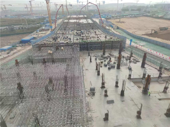 今年三季度以来,随着T2航站楼E指廊项目二层结构施工的开始,地上主体结构进入了建设加速期。在建设单位济南国际机场建设有限公司的统筹协调和大力推动下,施工单位中建新疆建工精心策划、科学组织,抢抓施工黄金期,抓实抓细工程质量安全工作,同步作业实现多点开花,全力加快E指廊地上主体结构施工,形成“大干快上”的良好局面。