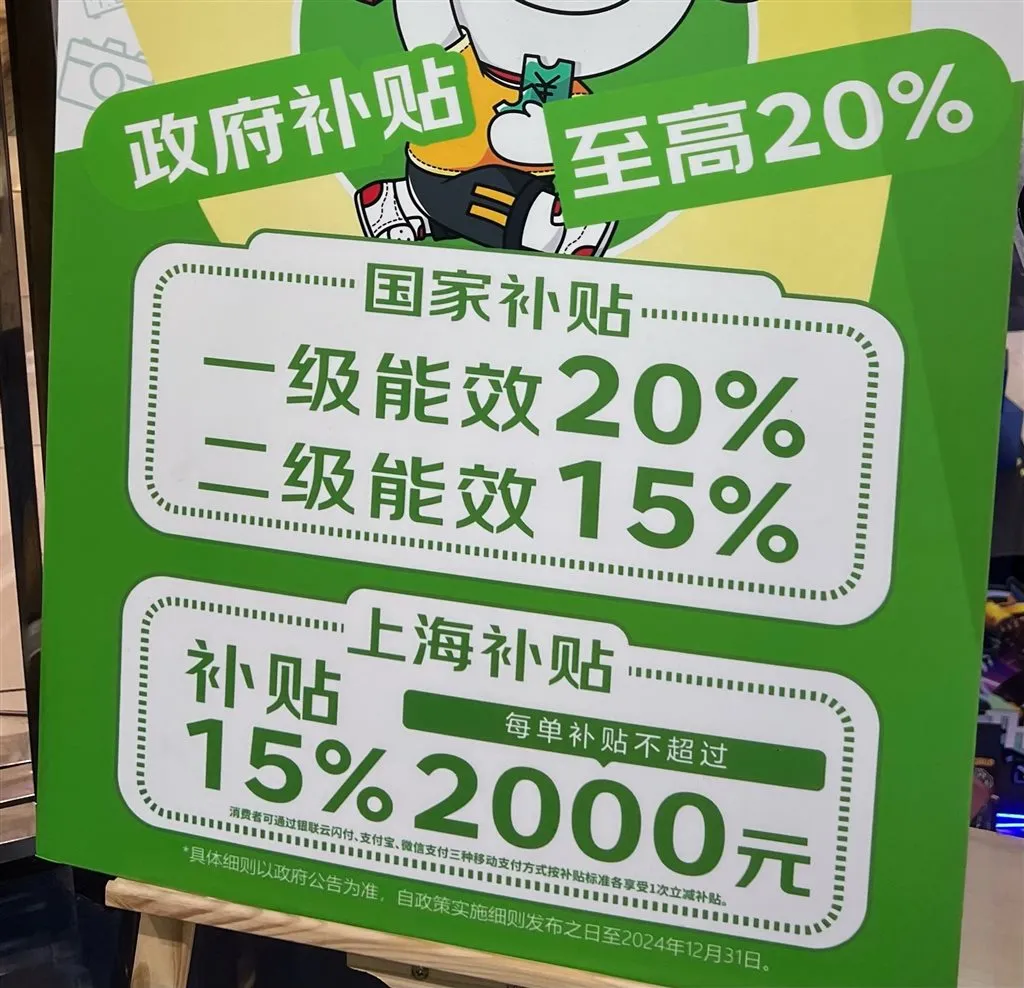 此前已出台的“国补”家电在银联云闪付、支付宝和微信小程序上领品类券后,在政策参与商户核销支付时立减,一级能效产品补贴20%,二级能效补贴15%,每个品类限补贴1件。“沪补”家电和家居产品直接按照成交价15%立减,可通过云闪付、支付宝和微信支付三种移动支付方式各补贴1次,每次补贴额不超过2000元。