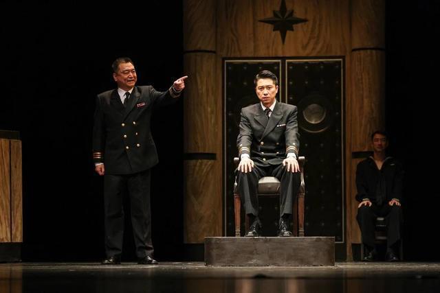 台上的每一句台词都像一颗定时炸弹,随时可以引爆全场。整个演出过程中,高密度、快节奏的语言,让辩论释放出巨大的能量。上至上校、舰长,下到三等兵,一个个身份和性格不同的证人被传唤、坐在高椅子上陈述,通过对话和辩论的层层推进,勾勒出一个复杂的军事审判过程。台下的观众跟随着剧情一起思索、反问、探寻,最终在这场语言的密集“轰炸”中,厘清整个事件的来龙去脉。《哗变》在塑造鲜活的人物形象的同时,也为剧中所有的事件提供了有层次、可推敲的递进。这不仅是一场关于真相和正义的较量,也是一场智者之间的对决。
