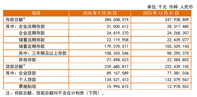 截至三季度末,常熟银行存款总额2846.08亿元,其中企业定期存款246.19亿元,储蓄定期存款1793.7亿元。贷款总额2396.85亿元,其中企业贷款891.67亿元,个人贷款1345.21亿元。