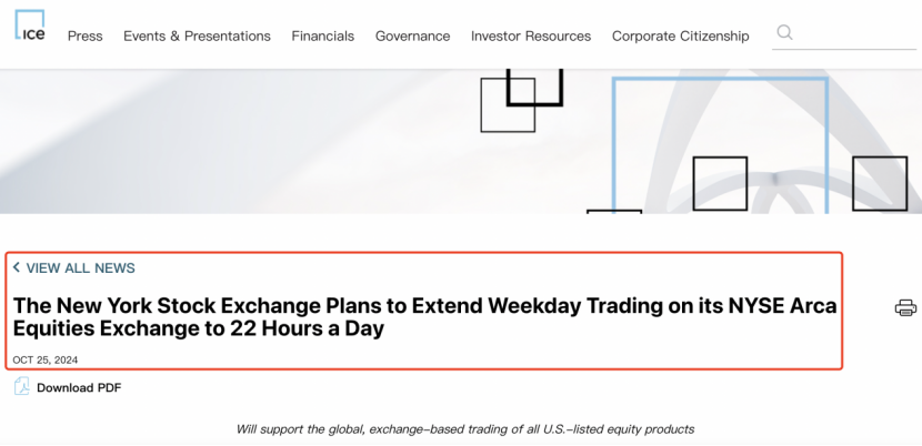 纽交所官宣:计划延长美股交易时间至每个工作日22个小时