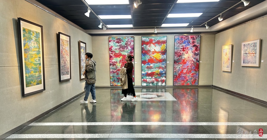 此次“自然笔记”画展展出徐刚近年创作的纸本彩墨抽象作品约60件,笔触深处“黑也玲珑,红也玲珑”,青山叠彩、细雨迷蒙、青的树、绿的风,都是诗人、画家与自然对话的记录,还有部分往年水墨、书法作品及文学作品也在展览中呈现。