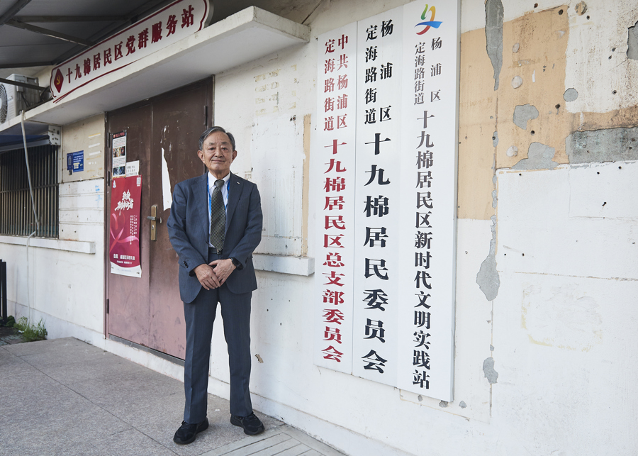 沿着平凉路往东行至军工路,左拐驶入平凉路2767弄。过去百年来,这里一直是上海纺织工业集聚区,如今不复当年热闹。古林恒雄指向一栋已搬空的老式公房,“我过去住的外国专家宿舍就在附近”;小区尽头有堵水泥墙,“墙的另一边是厂区,以前上下班时人来人往”。