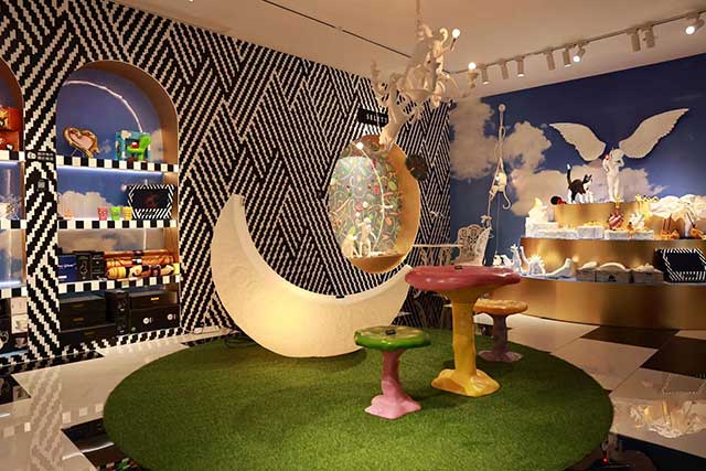 相同的时间,以创新精神与诙谐风格著称的意大利设计与生活方式品牌 SELETTI ,在意大利、英国、韩国、美国、阿尔巴尼亚、土耳其等地陆续开设旗舰店后,新店落址淮海中路新潮流设计地标LADY淮海。由知名工作室 Brigolin Baschera Studio 操刀设计,打造和谐环境。店内采用金色饰面并铺设大理石地板,展现轻奢气息。