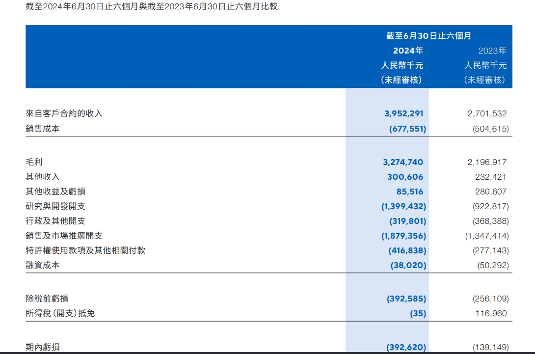 2024年半年报显示,信达生物收入39.52亿元,同比增加46.3%;亏损3.93亿元,同比增亏2.54亿元。对于亏损增加,信达生物称,主要由于非现金项目净汇兑收益的减少及一次性所得税抵免的减少。