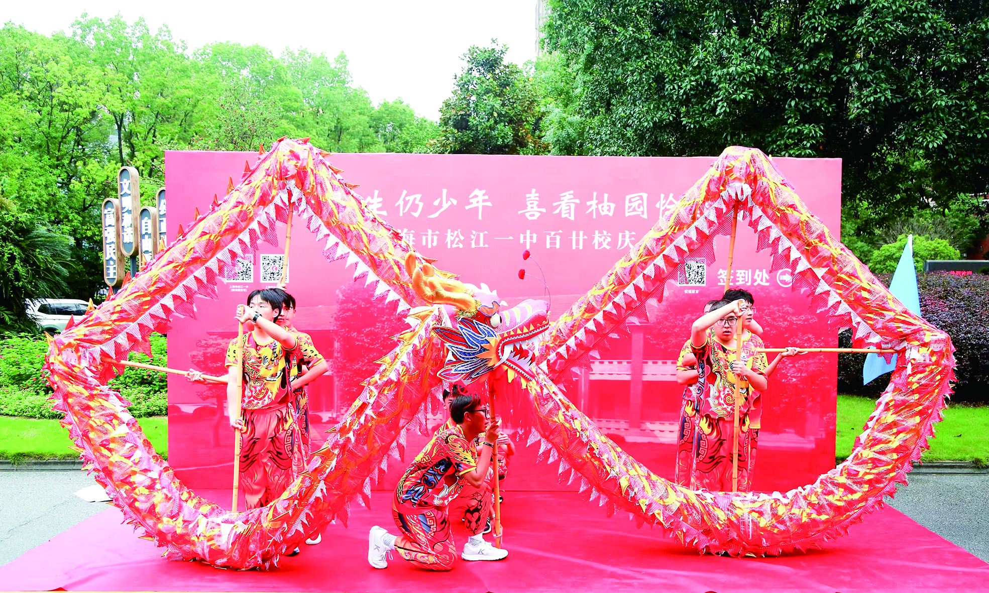 当天的校庆分为展示篇、学术篇、归来篇、庆典篇四大组成部分,包含原创音乐报道剧公演、个性化教育图片展、“校友之夜”狂欢节等12项活动,全国优秀教师周正云,上海长海医院精准治疗科主任、研究员、国家重点研发计划青年科学家李晶等知名校友回校。其中,原创音乐报道剧《一梦百廿》是松江一中师生自编自导自演的第七部音乐剧,该剧以1960届杰出校友徐震时先生的书画情缘为线索,通过他波澜壮阔的人生轨迹,带领观者回望松江一中薪火相传120年的辉煌历程,感受代代相传的梦想与坚持。