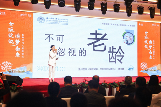 瓯园开业现场,泰康同步举办了长寿时代大健康论坛,邀请到原中国保监会副主席魏迎宁和温州医科大学附属第一医院医疗保健中心主任林卫红,分别进行了《养老产业与养老金融》和《不可忽视的老龄》的主题演讲。