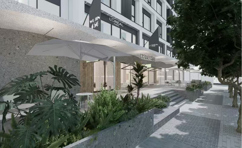 值得一提的是,项目采用现代海派的设计手法,在首层沿街融入老上海的风貌特色,运用水洗石、红墙、青砖等元素,营造活力四射的邻里空间。在高区部分采用现代手法,在满足功能的同时,也保留了工业建筑的历史文脉,为现代生活提供独特的文化背景。一些细节设计上会保留笔尖的元素,比如,建筑外立面上采用一些波浪形铝板,采用一些棱角突出的瓷砖,营造用笔划过的波浪饰品线等。