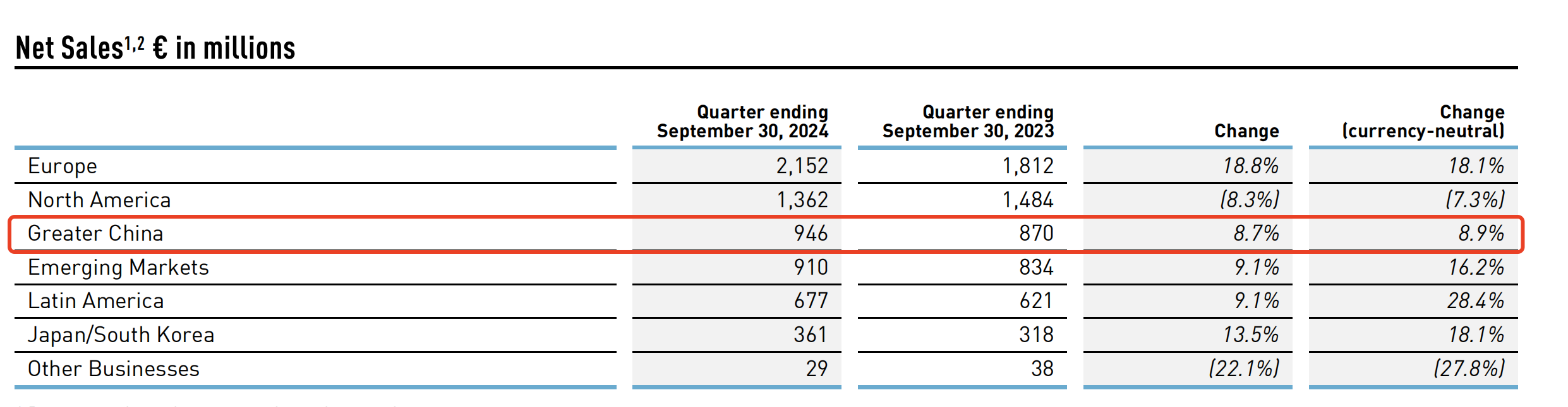 从具体市场来看,若北美市场剔除Yeezy销售额的影响,则阿迪达斯全市场均实现全面增长。 欧洲、新兴市场、拉丁美洲及日韩市场均实现两位数增长。今年三季度,大中华区营收达9.46亿欧元,同比增长近9%。前三季度营收达26.65亿美元,同比增近6%。