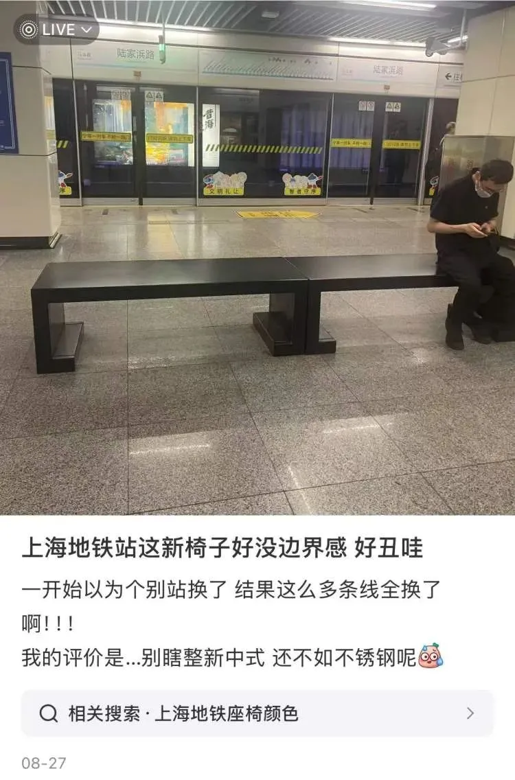 今年8月上海地铁逐步在部分地铁站更新的新款黑色长凳更是引起较大争议。