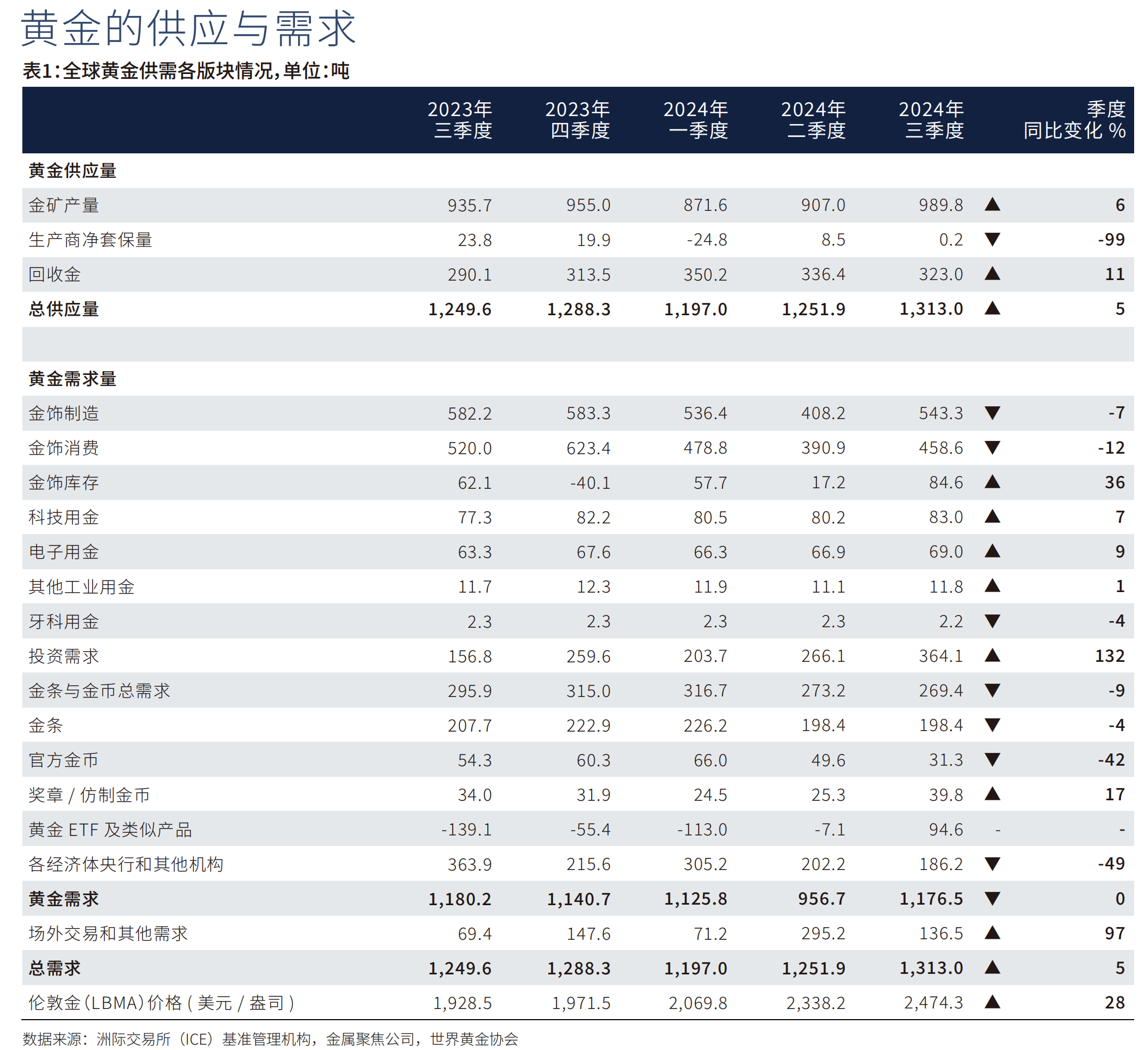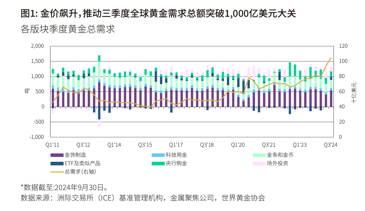 三季度全球黄金需求达1000亿美元,创历史新高。