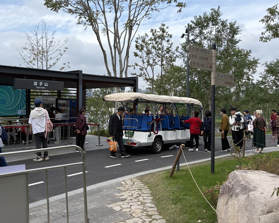 考虑到全面开园后面积较大,园方还在南区新增观光车服务,设置8个观光车站点。每个站点配备的工作人员是“指路能手”,还能清楚地说出各个景点的特色,同时根据游客需求推荐公园内的餐饮等服务。目前,公园内引进了DQ冰淇淋、M Stand咖啡、W Coffee、叮当丛林、快闪花店等品牌商户,上新了“巨人柱”雪糕、水晶玻璃风光冰箱贴等文创产品,未来还将引进更多品质商户。