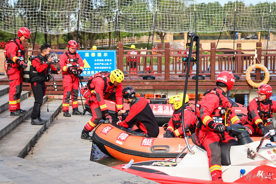 2024年10月29日,上海市消防救援总队水上支队举行第七届进博会消防安保工作动员大会暨岗位练兵成果展示,包括通信指挥、水域救援、后勤保障三大模块。