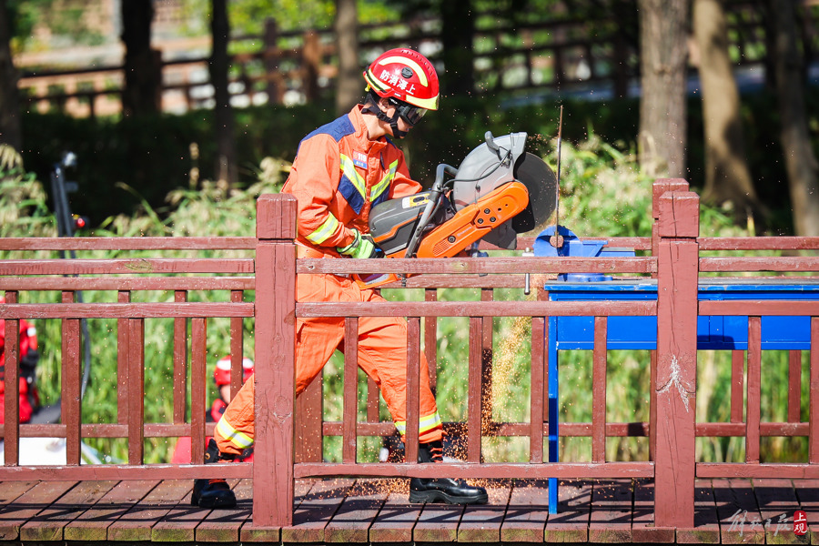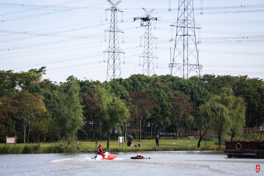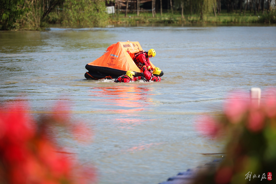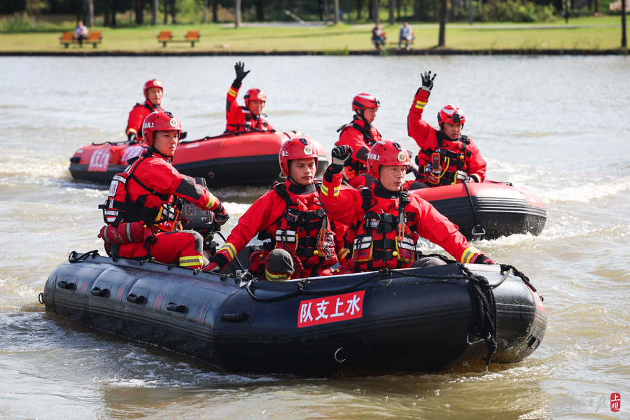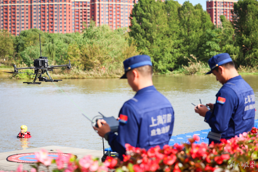 水上支队的消防员们以练为战,演练了实战救援中的各项科目,包括无人机穿越障碍和无人机通信组网、岸际综合救援、无人机远距离抛投和摩托艇联合救援、孤岛救援、救生筏转移被困人员、绳索横渡救援、潜水打捞等内容。