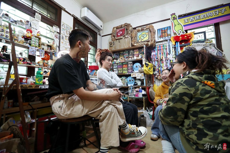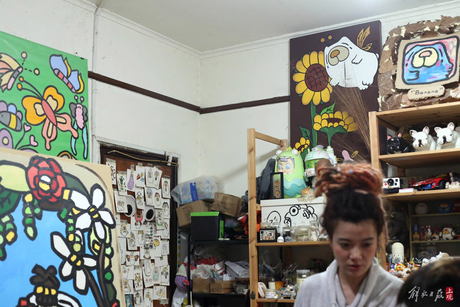 工作室常有朋友造访,忙的时候王香蕉就见缝插针画画。