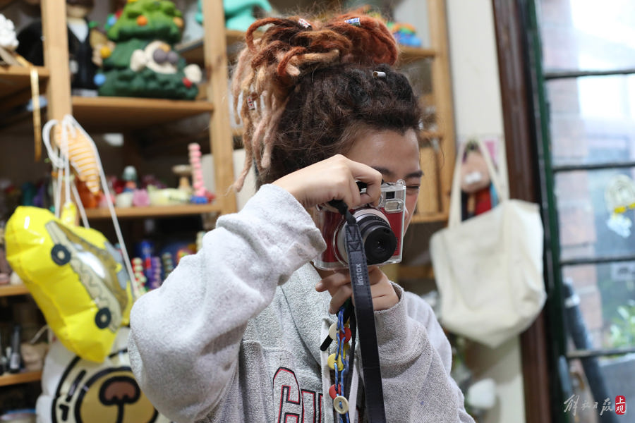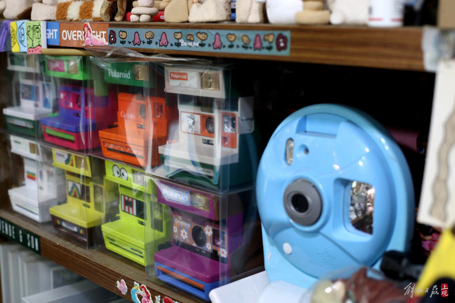 香蕉的工作室隐匿在巨富长幽静的院子里,10多平方米的房间堆满了手绘本、作品和周边,还有她收藏的拍立得机器,她喜欢拿在手中的照片的质感,喜欢用这种方式记录生活。墙上挂满了刘先生为爱而跑的各种奖牌……