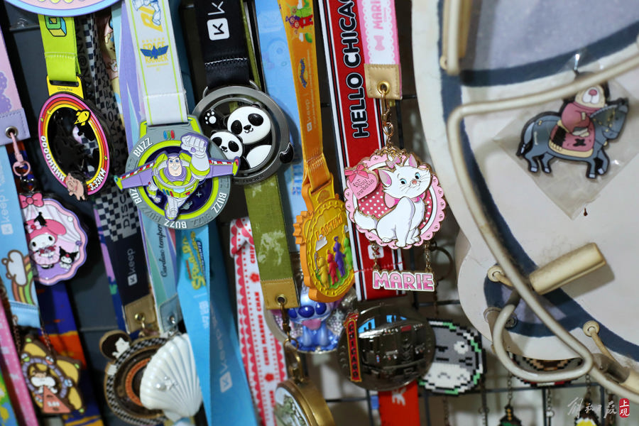墙上挂满了刘先生为爱而跑的各种奖牌。