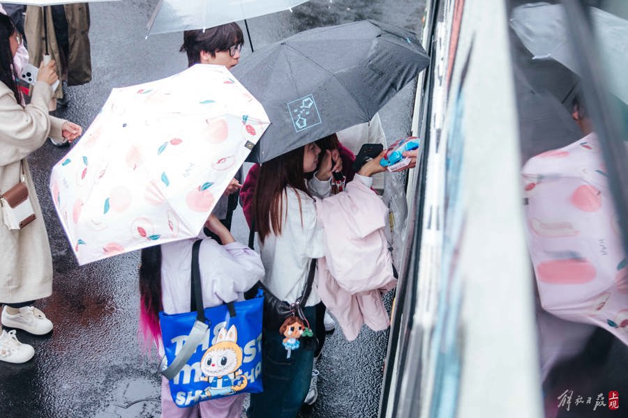 经过淮海路光明村,排队的人群被巴士吸引纷纷送出祝福。