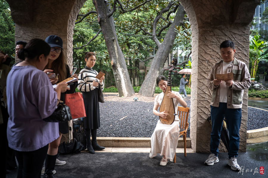 在卖花女清脆的叫卖声中,新鲜湿润的白兰花被一朵朵递到观众们的手中,随后大家收到一份邀请函,循着天井中琵琶声,踏入孙科别墅,进入一场跨越时空的舞会。