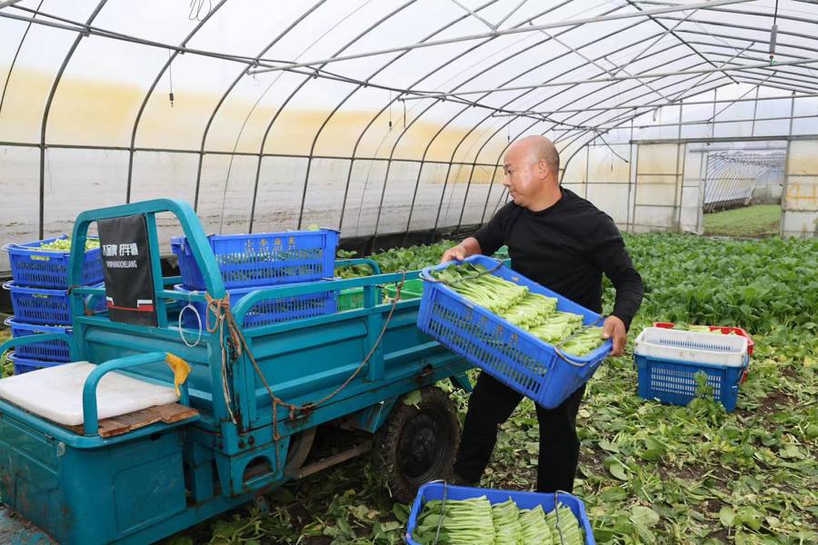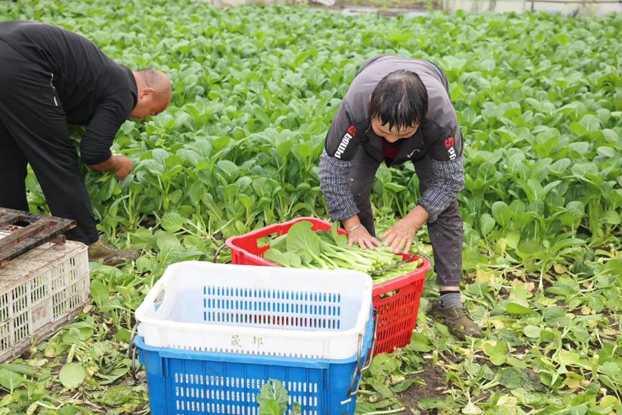 另一处,位于朱泾镇牡丹村的上海蔓菜果蔬种植专业合作社,80多亩时令蔬菜中有40亩全部到了成熟采摘期,工作人员正在对广东菜心、生菜、青菜等蔬菜加紧抢收。合作社负责人刘小军还提前联系了批发市场,抢收上来的蔬菜一出棚就被拉走,并第一时间运往市场进行销售。