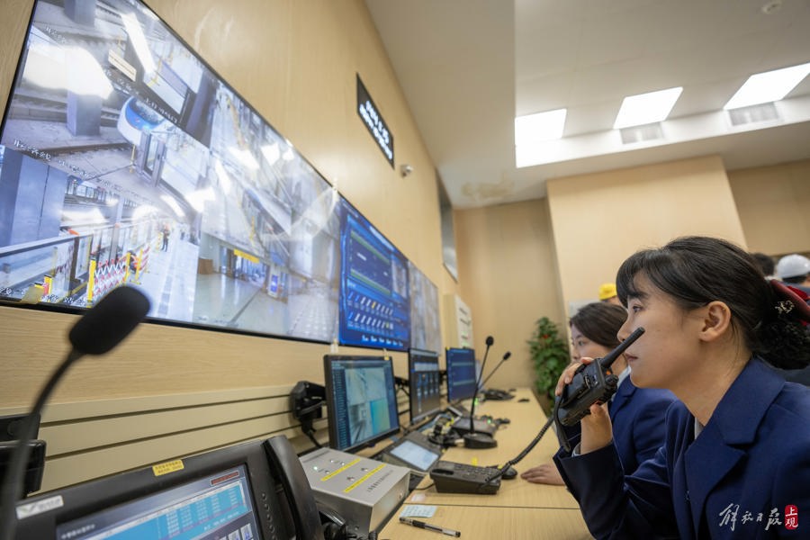 中春路站车控室内, 工作人员正在对设备进行调试。