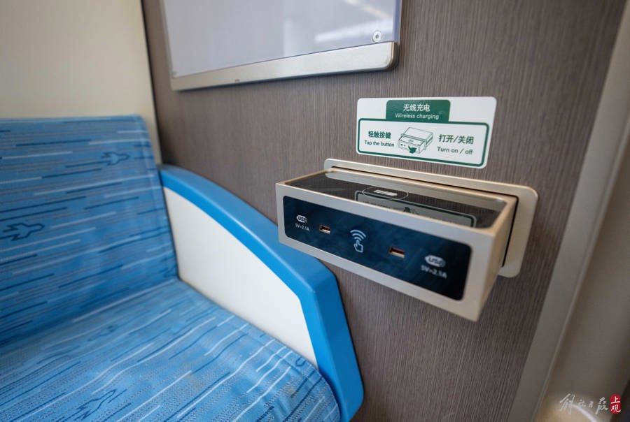 为方便“两场三站”等重要交通枢纽的乘客,机场联络线列车宽度、长度和高度都比传统地铁车辆有所提升,内部空间更宽敞,还增设了行李架和无线充电设备。