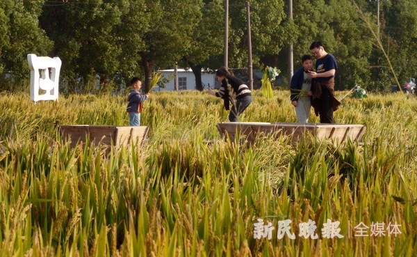 正值沪郊大地稻浪翻金波,青浦区练塘镇的阿特麦文创园举办“稻田丰收季”系列文创活动,市民游客徜徉在一望无际的金色稻穗中,享受稻田下午茶,还可以漫步在田间,欣赏以稻草为材质创作的创意艺术作品,感受独特的乡村风情,让田园生活与大自然融合。