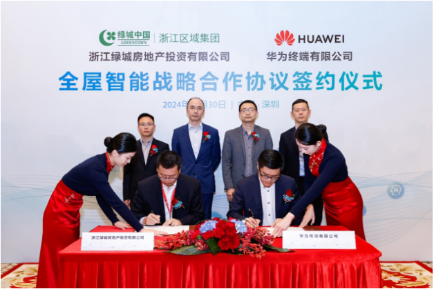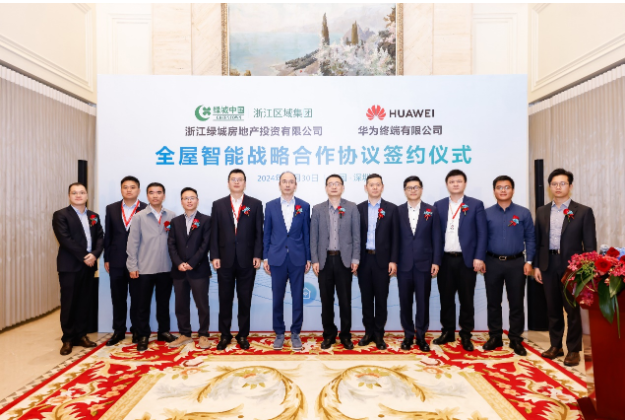 10月30日,浙江绿城房地产投资有限公司(以下简称 “绿城浙江”)和华为终端有限公司(以下简称“华为”)在华为深圳总部签订全屋智能战略合作协议,双方将进一步深化战略合作关系,基于让更多人住上“绿色、低碳、智能、安全”的好房子的理念与实践,共同打造智慧化体系标杆。