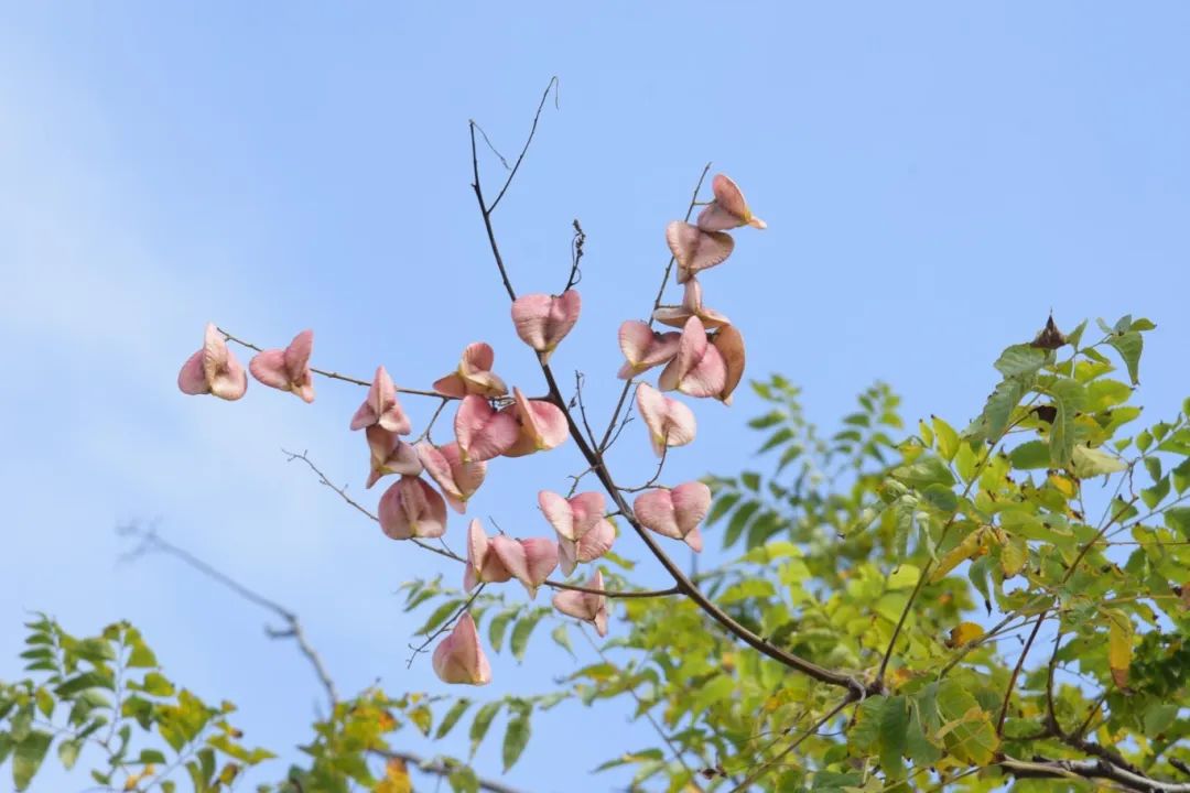 秋季的吴家浜公园格外浪漫,金黄的栾花、红色的果实,与绿叶交相辉映,仿佛一幅流金溢彩的秋日画卷。