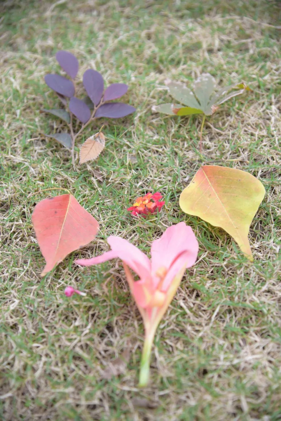 沿着小道在林地内穿梭,一路能捡到天蓝鼠尾草,吊竹梅等落叶,感受秋日的宁静。