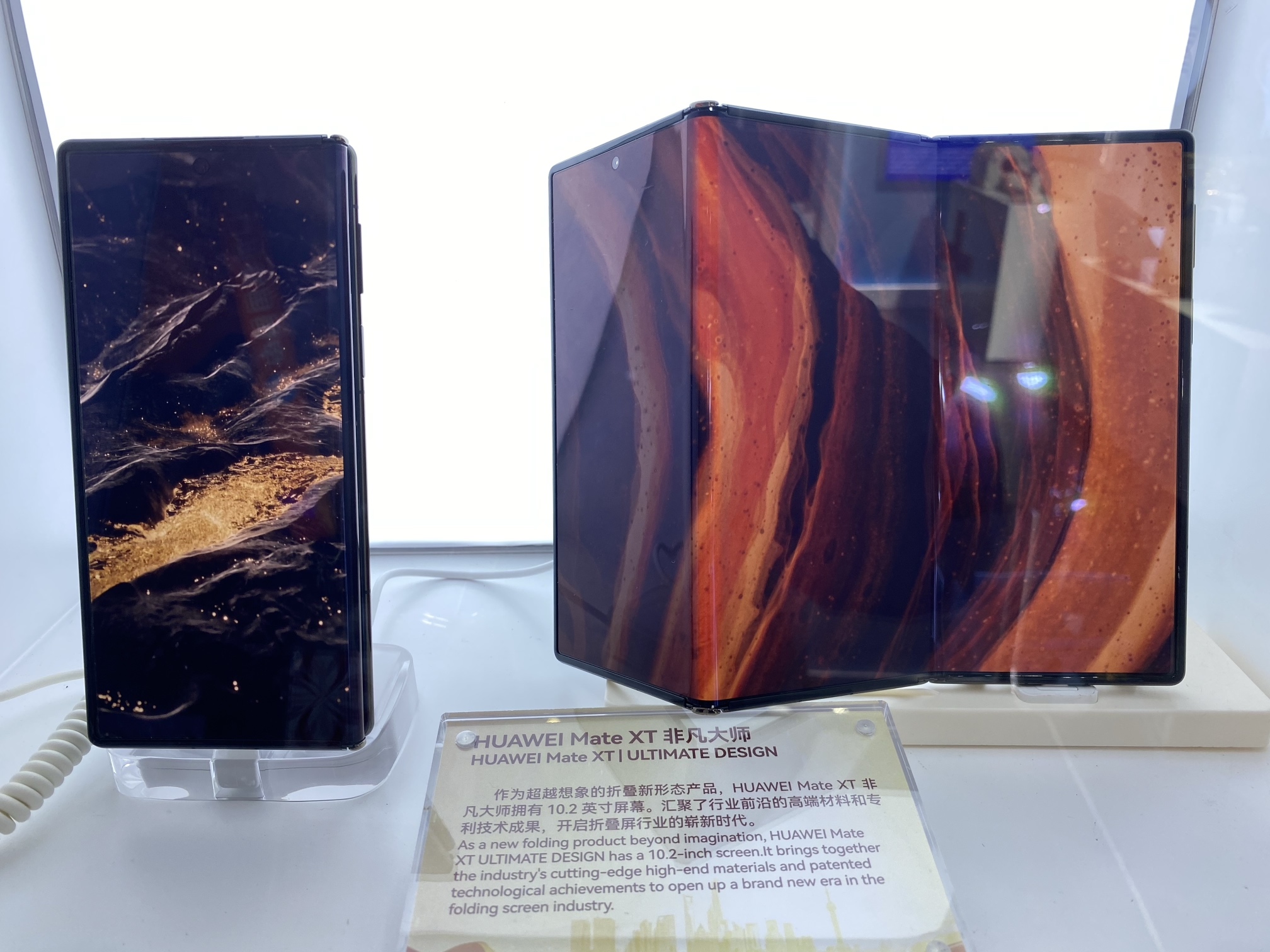 此外,现场展出的工业版人型机器人WalkerS,具备全方位感知系统,其自主运动及决策能力大幅提高,可在工厂流水线实现精准安全同步的作业;HUAWEIMateXT非凡大师三折叠屏手机拥有10.2英寸屏幕,汇聚了行业前沿的高端材料和专利技术成果。