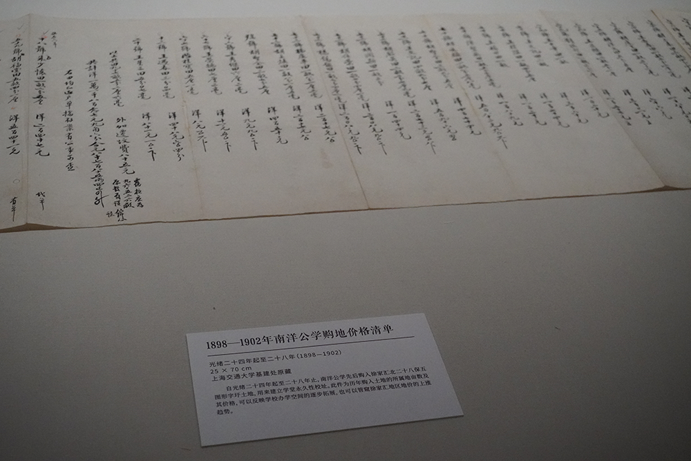 跨越三个世纪的上海交通大学徐家汇校园早期购地地契档案也公之于世,1898年至1902年南洋公学购买徐家汇校地清册(部分)、购地卷宗的套封此次也予以展出。