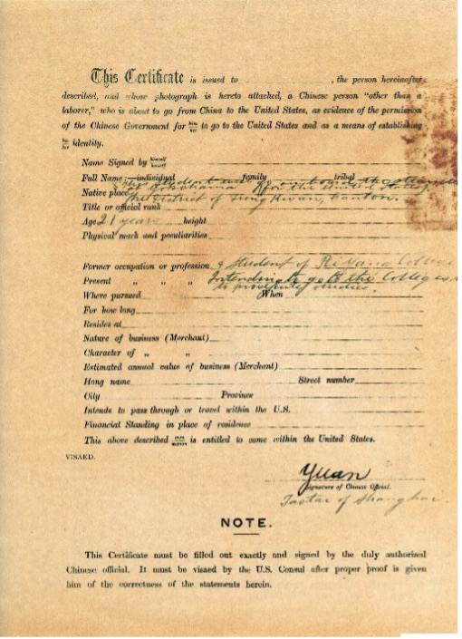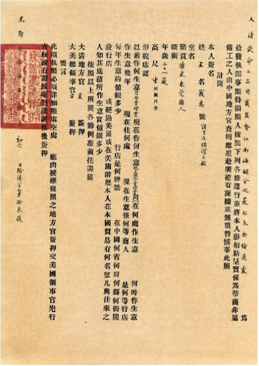 1901年中国第一所大学北洋大学堂毕业生、著名法学家王宠惠赴美留学护照(中文版) 主办方 供图